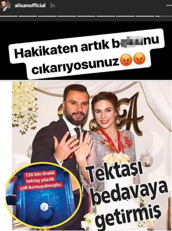 Oyuncu Buse Varol il nişanlanan ünlü Alişan, son günlerde “Tektaşı bedavaya getirdi” gibi haberlere konu olmuştu. Alişan’ın Buse Varol’a taktığı tektaş yüzüğün sponsor hediyesi olduğu, Alişan’ın nişandan önce yüzüğün tanıtımını yaparak tektaşı bedava aldığı iddia edilmişti. Alişan, sonunda isyan etti.