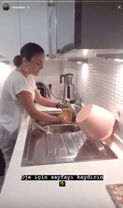 Çok yakın arkadaş olduğu bilinen Ezgi Mola Enis Arıkan’ı evde ziyaret ederek onun ev işlerini yaptı. İşte ikilinin birlikte ev maceraları.