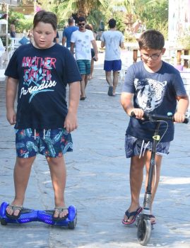Geçtiğimiz günlerde de yine muhabirlerin görüntülediği Hüseyin Kaya Çilingiroğlu, Türkbükü’nde scooter sürerken dengesini kaybederek yere kapaklandı. 12 yaşındaki küçük Kaya’nın imdanına çevredekiler koştu. Kazayı ufak sıyrıklarla atlatan Kaya yoluna devam etti.