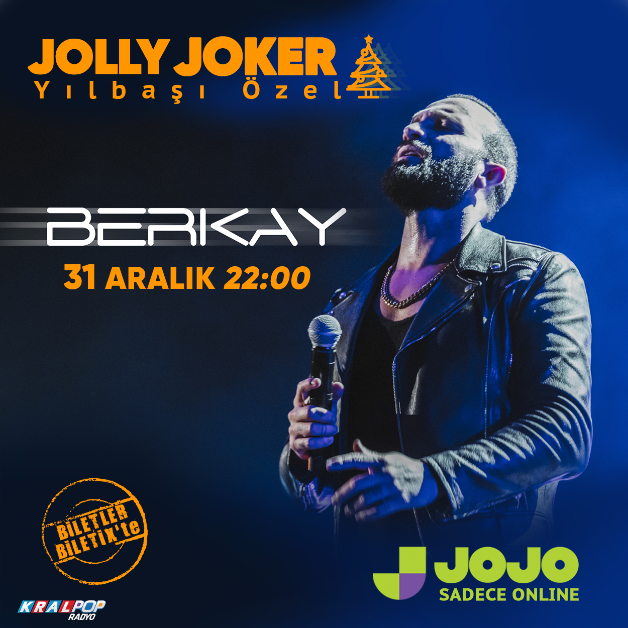 Şarkıcı Berkay yeniyıl gecesi dijital çağdaki eğlencenin doya doya yaşandığı, yüksek etkileşimiyle gerçekçi bir platform olan JoJo’nun hiç bir masraftan kaçınılmayan prodüksiyonu ile Jolly Joker Vadistanbul sahnesinden canlı yayınlanacak olan konser ile müzikseverlerin karşısında hazır olacak.