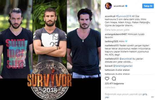 Survivor 2018 All Star için heyecanlı bekleyiş devam ediyor. Acun Ilıcalı tarafından yapılan açıklamalarla yarışmanın yeni sezonunda yer alacak isimler öğrenilirken, Ilıcalı 3 yeni isimle daha anlaşma yapıldığını duyurdu.