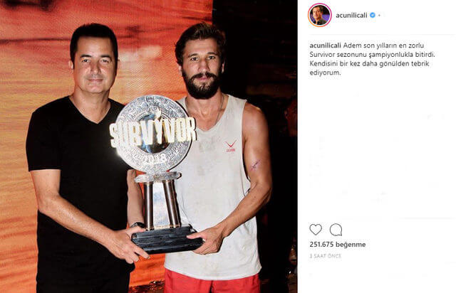 Türkiye’nin en çok izlenen ve reytinglerde zirvede olan yarışma programı olan Survivor ile ilgili Acun Ilıcalı’dan çok geçmeden paylaşım geldi. Geçtiğimiz haftalarda sezonu bitiren ve yeni sezon hazırlıklarına şimdiden başlayan Acun Ilıcalı, Instagram hesabından bu yılın şampiyonu Adem’i paylaşarak samimi açıklamada bulundu. Acun Ilıcalı, Adem ile birlikte olan bir fotoğrafı paylaşarak açıklama yaptı: Adem son yılların en zorlu Survivor sezonunu şampiyonlukla bitirdi. Kendisini bir kez daha gönülden tebrik ediyorum diyerek taktir etti…