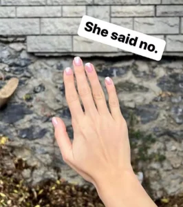 Mert Yazıcıoğlu’nun paylaşımında Afra Saraçoğlu’nun elinin boş olması ve oyuncunun “She said no” (‘hayır’ dedi) yazması takipçilerini güldürdü.