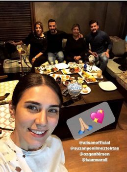Buse Varol, ailelerin bir araya geldiği fotoğrafları sosyal medya hesabından paylaştı. Güzel oyuncunun paylaştığı karelerde Alişan, annesi Suzan Tektaş ve Buse Varol’un annesi Birsen Özgan’la kardeşi Kaan Varol birlikte gözüküyor.