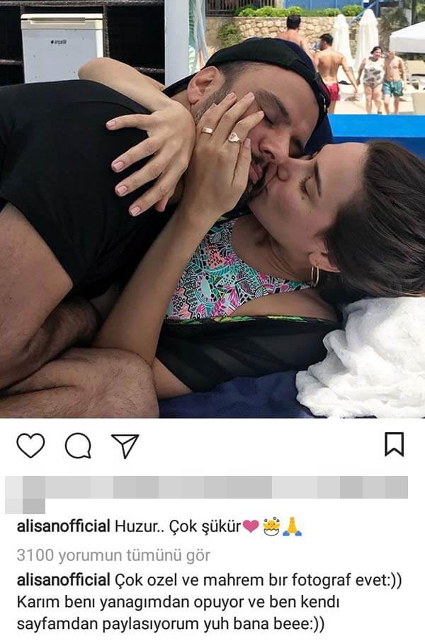 Eşinin kendisini yanağından öperken çekilmiş bir fotoğrafı paylaşan Alişan kendisine gelen ‘mahrem’ yorumları sonrasında şu açıklamayı yaptı: “Çok özel ve mahrem bir fotoğraf evet… Karım beni yanağımdan öpüyor ve ben kendi sayfamdan paylaşıyorum yuh bana be!” yorumunu yaptı. Alişan’ın bu yorumu bazı takipçiler tarafından komik bulundu.