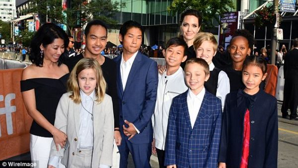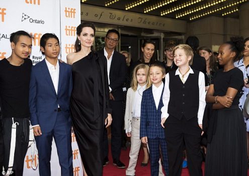 Önceki gün, yapımcılığını üstlendiği ‘The Breadwinner’ filminin Toronto Film Festivali’ nde ki prömiyerine altı çocuğuyla katılan 42 yaşındaki oyuncu, bu defa yine çocuklarıyla birlikte ‘First They Killed My Father’ filminin prömiyerinde idi.