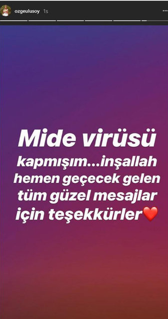 Ünlü manken Özge Ulusoy, hayranlarını korkuttu. Yaptığı paylaşımdan sabaha doğru hastaneye gittiği belli olan Özge Ulusoy, neden hastanede olduğu ise merak konusu oldu. Hastaneden herhangi bir açıklama yapılmadı. Fakat Özge Ulusoy başarılı model, yaptığı paylaşım sonrasında yaşanan merakı gidermek adına mide virüsü teşhisiyle hastaneye yattığını ve en kısa zamanda da çıkmayı beklediğini yazdı. Manken Özge Ulusoy, biraz olsun hayranlarının yüreğine su serpti…