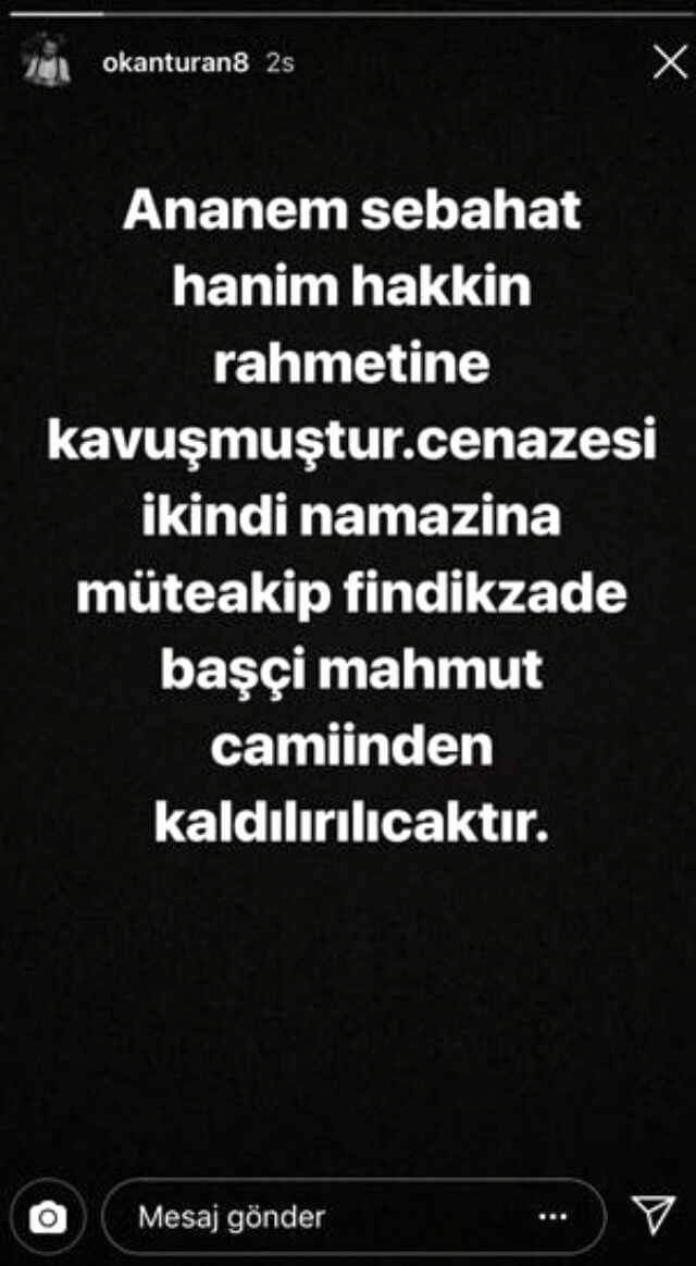 Acı haberi Arda Turan’ın kardeşi Okan Turan Instagram hesabından şu sözlerle duyurdu: “Anneannem Sebahat Hanım, hakkın rahmetine kavuşmuştur. Cenazesi ikindi namazına müteakip Fındıkzade Başçı Mahmut Camii’nden kaldırılacaktır.”