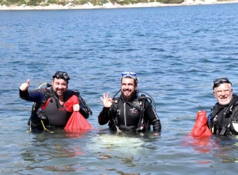 Gümüşlük Koyu’nda gerçekleşen deniz dibi temizliği çalışmalarına katılan Ata Demirer, son süngerci ‘Aksona Mehmet’ lakaplı Mehmet Baş, oğlu Fatih Baş ve dalgıçlar ile birlikte denize dalıp dibini temizledi. Demirer, Tavşan Adası ve Gümüşlük sahilinde yaklaşık 1 saat dalış gerçekleştirdi. Sualtı kameraları ile belediye ekipleri tarafından görüntülenen temizlik çalışmaları yaklaşık olarak iki saat sürerken, yaklaşık 600 kilo çeşitli çöp toplandı.