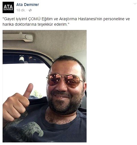 Yapılan tedavinin ardından hastaneden taburcu edilen Ata Demirer, ayağı bandajlı şekilde hastaneden ayrıldı. Hastaneden ayrılırken taksiye binen Demirer, “Çok şükür ciddi bir şey yok. Motora binmeye çalışırken, motor üstüme düştü.” diye kısa bir açıklama yaptı. Taksiye binerek Bozcaada’ya doğru yola çıkan Ata Demirer, yolda bir fotoğrafını çekerek “Çok şükür ciddi bir şey yok. Motora binmeye çalışırken, motor üstüme düştü.” notunu düştü. Demirer, bu pozu sosyal medya hesabı üzerinden paylaşarak sağlık durumu hakkında bilgi verdi. Ata Demirer için endişelenen sevenleri, bu paylaşım ile rahat bir nefes aldılar. İşte Ata Demirer’in o paylaşımı…