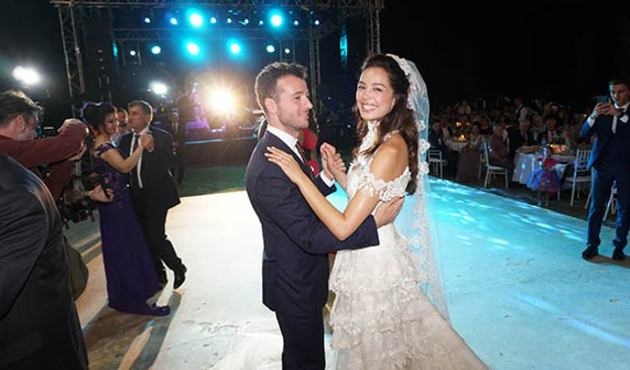 Gelin Azra Akın, Cemil İpekçi imzasını taşıyan özel bir gelinlik giyerken, damat Atakan Koru lacivert bir takım elbise giymeyi tercih etti.