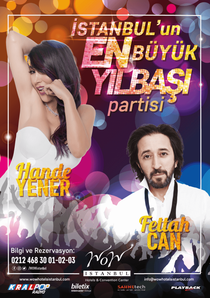 Sahnesi ve birbirinden güzel şarkıları ile dikkat çeken şarkıcı Hande Yener, 31 Aralık akşamı Yeşilköy’deki İstanbul WOW İstanbul Hotel’de sahnesiyle yeni yılda muhteşem bir sahneye hazırlanıyor. Fettah Can’ın da sahne alacağı gece için büyük bir sürpriz hazırlayan Türk Pop Müziği’nin usta ismi Hande Yener izleyenlere bambaşka bir sahne yaşatacak. İşte Detaylar…