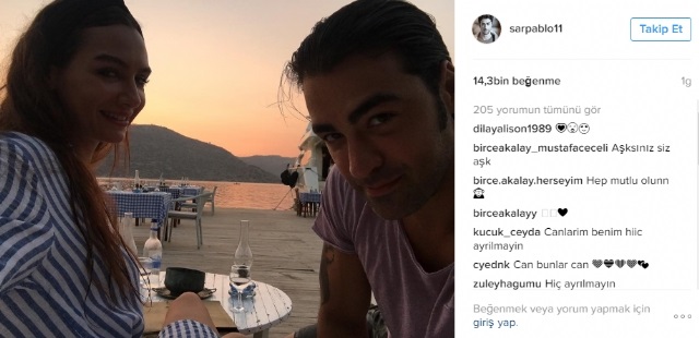 Birlikte rol aldıkları dizide aşk yaşamaya başlayan ve aşklarını evlilikle taçlandıran Birce Akalay ve Sarp Levendoğlu çifti, bir süredir haklarında çıkan boşanma dedikodularına romantik bir fotoğrafla yanıt verdi. Sahilde başbaşa oldukları bir pozu takipçileri ile paylaşan çift, bu romantik fotoğraf ile boşanma dedikodularını yalanladı. İşte detaylar… Birlikte rol aldıkları Küçük Ağa dizisinde birbirlerine aşık olarak ilişki yaşamaya başlayan Sarp Levendoğlu ve Birce Akalay çifti, mutlu birlikteliklerini 2014 yılında muhteşem bir düğün ile taçlandırmışlardı. Geçtiğimiz günlerde iki yıldır evli olan çift hakkında boşanma dedikoduları çıkmıştı. Birce Akalay ve Sarp Levendoğlu’ndan bu dedikodulara yanıt gecikmedi. Birce Akalay’ın Bodrum’da Sarp Levendoğlu olmadan tatil yapması sonucu ortaya çıkan boşanma dedikoduları ortaya çıkmıştı. Bu dedikoduların üzerine Sarp Levendoğlu hemen eşi Birce Akalay’ın yanına gitti.