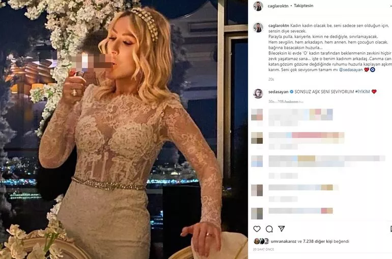 Seda Sayan, kendisinden 25 yaş küçük müzisyen sevgilisi Çağlar Ökten ile geçtiğimiz hafta evlendi. Düğüne Sayan’ın oğlu Oğulcan Engin katılmadı. Bu haberlerle gündemde olan Çağlar Ökten karısı Seda Sayan’ın bir pozunu paylaşarak yaptığı yorumla dikkat çekti. Çağlar Ökten’den Seda Sayan’a iltifat yağmuru geldi. İşte o kare ve Ökten’in paylaşımı;