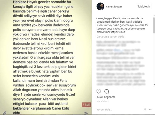 Şiddet iddialarına sosyal medya hesabından yanıt veren Caner Toygar, paylaşımında “Normalde bu konuyla ilgili bir şey yazmayacaktım. Yine basında benimle ilgili ‘Caner Berke’yi dövdü, adliyeye sevk edildi’ diye haber yapılıyor. Evet, olayın polis kısmı doğru ama şiddet yok. Berke’nin ifadesinde polis soruyor ‘darp var mı?’ O da ‘hayır darp yok’ diyor. İfadesi elimde. Kendisi darp yok derken siz beni nasıl suçlarsınız? İfadesinde ‘telefonumu kırdı, tehdit etti’ diyor… evet, telefonu kırdım. Kırma nedenim; başka erkeklerle mesajlaşırken yakaladım. O an kargaşa oldu. ‘Telefonu ver’ demeye başladı. Telefonu fırlattım, bağırıştık. Evi 3 kez terk edip giden birini affetmekle büyük hata yaptım. Ben bu sefer kendimi kullandırmam! Beni sırtımdan fena vurdun! Söyleyecek çok şey var, susuyorum.. Allah doğrunun yanında. Güzel senaryo oynadınız. Allah var, herkes ettiğini bulacak. Para bitti, aşk bitti, beklentiler karşılanmadı Caner kötü oldu…”