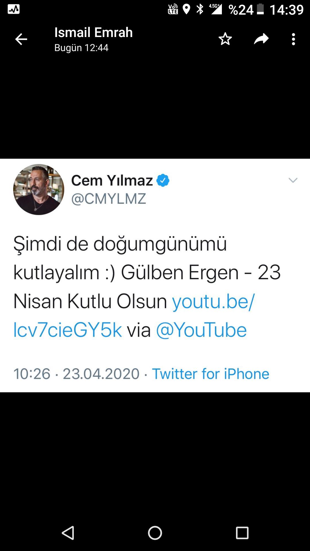 23 Nisan gibi özel bir günde doğan ünlü komedyen Cem Yılmaz, bu yıl ne kalabalık bir mekanda nede her zaman yanında olan dostlarıyla kutladı.. Daha da ihtişamlı bir biçimde hem kendi doğum gününü hem de çocukların 23 Nisan Ulusal Egemenlik ve Çocuk Bayramı’nı sosyal medya hesabından Gülben Ergen’in söylediği ‘23 Nisan Marşı’ ile kutladı…