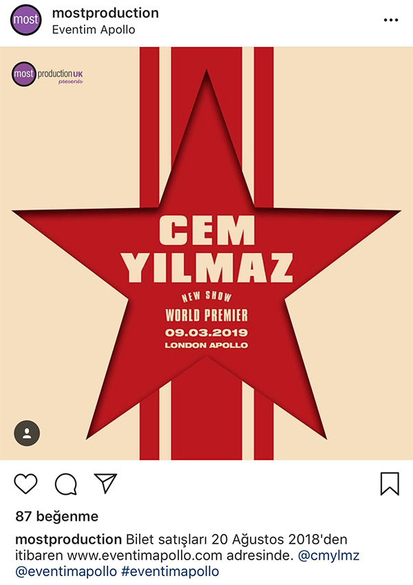 Ünlü Komedyen Cem Yılmaz, gösterinin tanıtımını 9 Mart 2019’da İngiltere’nin başkenti Londra’da yapacak…