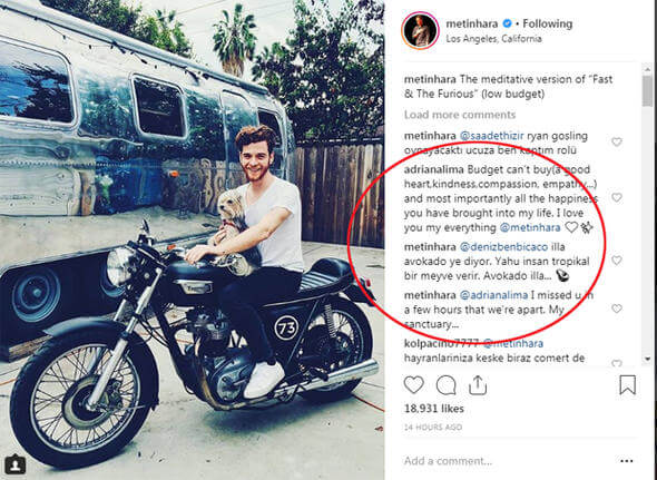 Türk Yazar Metin Hara, bir süre sevgilisini görmek için ABD’ye gitti. Çift bir süre birlikte vakit geçirdi. Ancak ünlü model Adriana Lima, yaklaşan Victoria’s Secret defilesinin hazırlıkları için New York’a gitti, Metin Hara ise Los Angeles’ta kaldı. Metin Hara, önceki gün Instagram sayfasında sevgilisinin minik köpeğini gezdirirken çekilen bir fotoğrafını paylaştı. Türk yazar Metin Hara, motosikletin üzerinde çekilen bu pozuna “Fast an Furious (Hızlı ve Öfkeli) filminin düşük bütçeli, medidatif versiyonu” notunu ekledi. Metin Hara’nın bu paylaşımına Adriana Lima’dan cevap geldi. Ünlü model adriana Lima, sevgilisinin paylaşımına “Bütçe iyi bir kalp, kibarlık, merhamet, empati ve en önemlisi de senin, benim hayatıma getirdiğin mutluluğu satın alamaz. Seni seviyorum her şeyim” yazdı. Metin Hara da bu mesaja “Ayrıldıktan sadece birkaç saat sonra seni özledim. Benim tapınağım” yazarak karşılık verdi. Ünlü çiftin büyük aşkları takdir topladı…