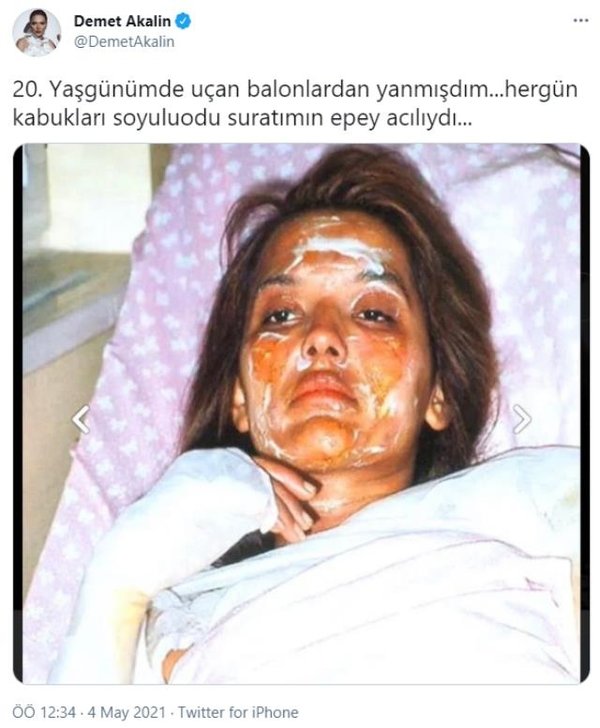 Akıma dahil olan ünlü şarkıcı Demet Akalın, herkesin aksine mutlu olduğu andan bir kare paylaşmak yerine yıllar önce yüzü yandığı için hastanede yattığı döneme ait bir fotoğraf paylaştı.