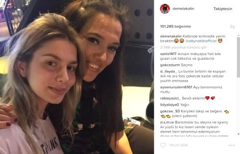Aleyna Tilki ve Demet Akalın, bir kafede buluşup sohbet ederken yanak yanağa fotoğraf çekildi. Akalın, bu pozu sosyal medya hesabından Aleyna Tilki’nin şarkısının sözleri “Kalbimde kırılmadık yer mi bıraktın” notu ile paylaştı. Aleyna Tilki de, Akalın’ın paylaşımını repost etti.