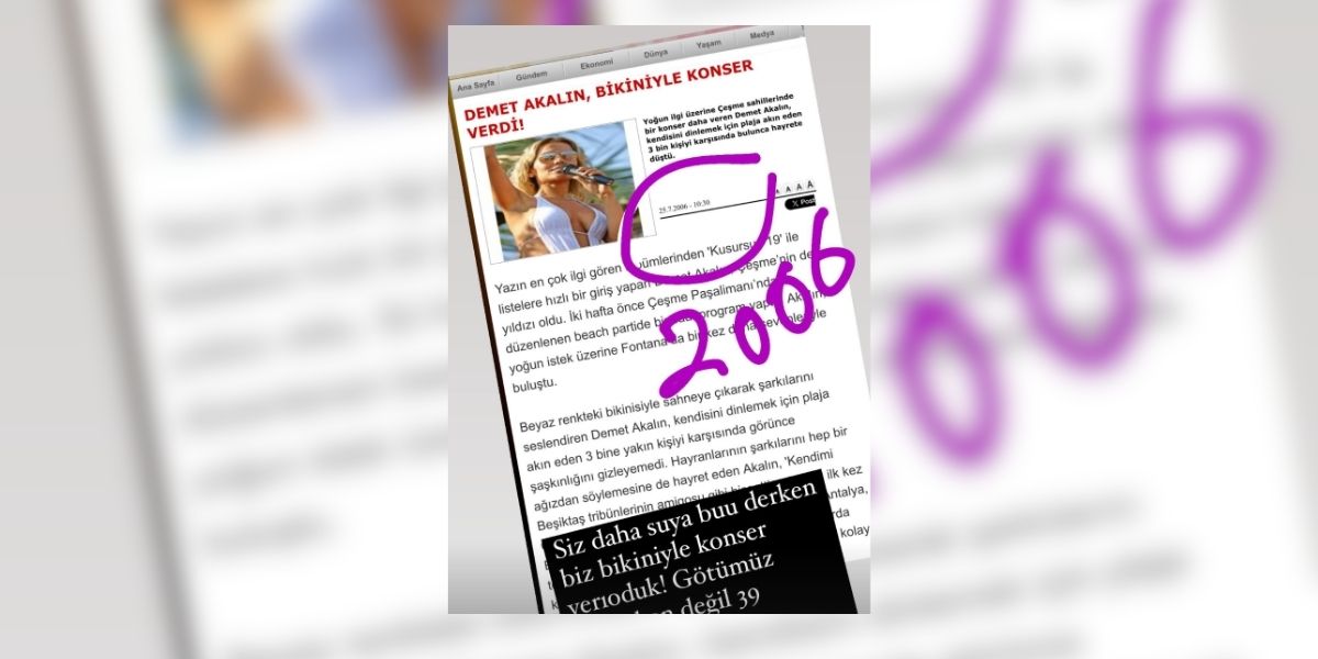 Dün giydiği bikinili transparan elbisesini sosyal medyada paylaşınca tepkileri üzerine çekti. Verdiği kilolarla şov yapan ünlü şarkıcı Akalın, gelen eleştirilerin ardından Instagram hikayesinde 2006 yılından kalma plajda verdiği konserlerden haberler paylaştı. “Siz suya buu derken biz bikinili konser veriyorduk. G*tümüz donarken değil.” sözleriyle eleştirenlere karşı kendini savundu.