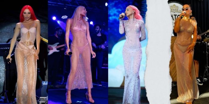 Verdiği kilolardan sonra plaj konserinde sahne alan Demet Akalın, giydiği transparan elbisenin Gülşen’in elbisesine benzemesiyle gündem oldu.