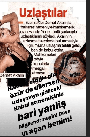 Hande Yener’in bu açıklamalarını gazeteden okuyan Demet Akalın ateş püskürdü. Şarkıcı sosyal medya hesabından şu açıklamaları yaptı;