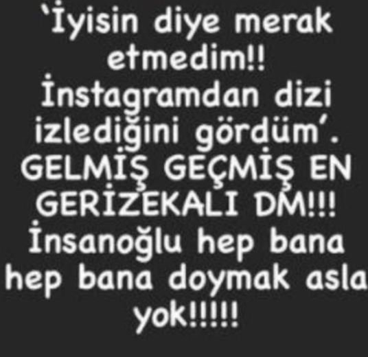 Ünlü popçu, sosyal medya hesabından ‘İyisin diye merak etmedim. Instagram’dan dizi izlediğini gördüm. Gelmiş geçmiş en gerizekalı DM. İnsanoğlu hep bana hep bana, doymak yok! ‘ paylaşımını yaparken Esra Balamir de sessiz kalmadı…