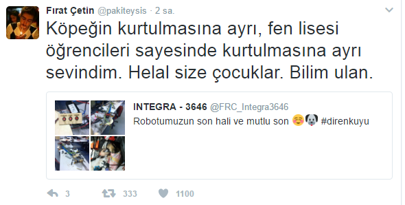 Ünlü popçu Demet Akalın sosyal medya hesabında 10 gün önce kuyuya düşen köpeğin kurtarıldığı haberini takipçileriyle paylaştı. İnstagram hesabında kuyudan çıkarılan yavru köpeğin fotoğrafını paylaşarak “Bahceshir fen ve teknoloji lisesi 😇10 gündür 61 metrelik kuyuda mahsur kalan köpek,İstanbul İtfaiyesi İSKİ,TKİ ve AFAD’dan oluşan 30 kişilik ekip tarafından 06’da kurtarıldı.Liselileri istedikleri zaman Sahne istanbulda agarlarim operim siizi be neguzel haber💞” yorumunu yazdı.