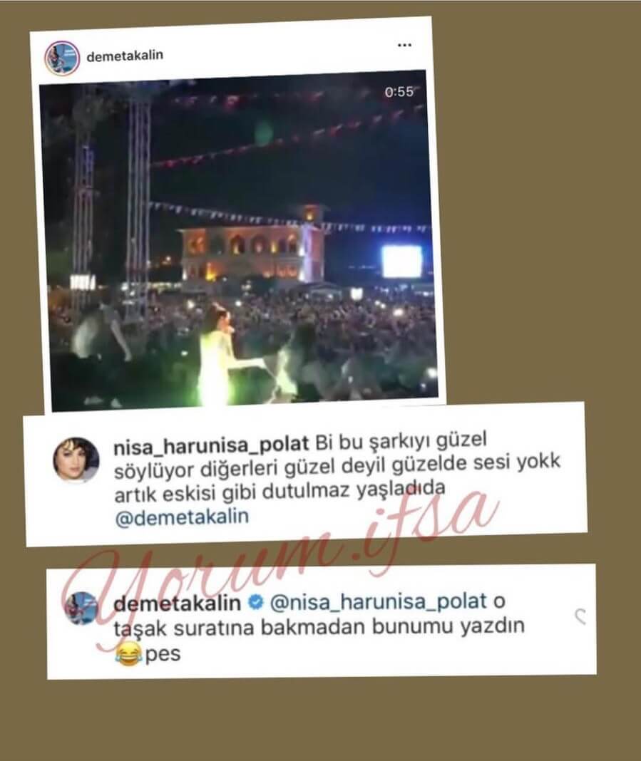 Boşanmanın ardından zor günleri atlatmaya çalışan Demet Akalın, sosyal medyada yapılan bazı eleştirilere dayanamamaya başladı. Akalın, bir konserinde çekilmiş pozuna yapılan bir yoruma çok öfkelendi. Demet Akalın’a, bir sosyal medya kullanıcısı “Bir bu şarkıyı güzel söylüyor, diğerleri güzel değil. Güzel de sesi yok artık eskisi gibi tutulmaz yaşlandı da” yorumunu yaptı.