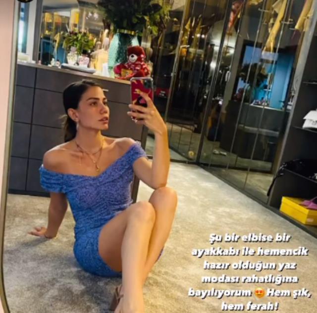 Mavi mini bir elbiseyle ayna karşısında poz veren Özdemir, “Şu bir elbise bir ayakkabı ile hemencik hazır olduğun yaz modası rahatlığına bayılıyorum. Hem şık, hem ferah!” notunu düştü.