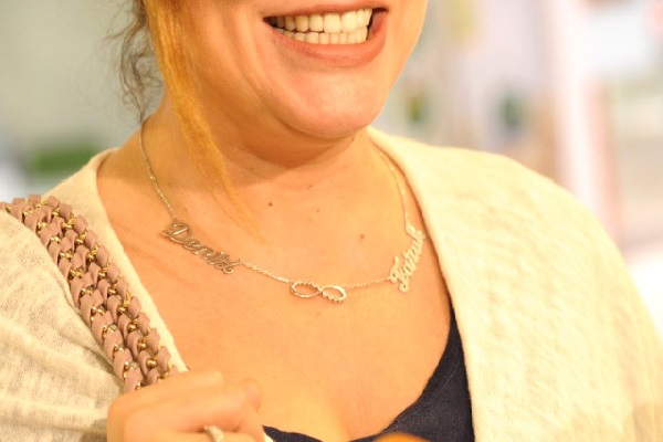 Deniz Seki’nin boynunda taşıdığı kolye dikkat çekti. Seki’nin kolyesinin üzerinden kendisinin ve nişanlısı Faruk Salman’ın isimleri yazarken, isimlerin aralarında sonsuzluk işareti yerleştirilmiş.