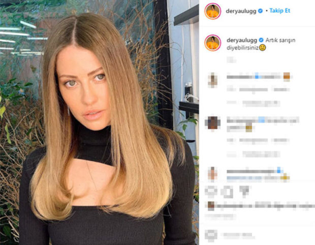 Saçlarının rengini değiştiren şarkıcı, son halini, “Artık ‘sarışın’ diyebilirsiniz” notuyla sosyal medya hesabından yayınladı. Derya Uluğ’un Instagram paylaşımı, yaklaşık 50 bin beğeni ve çok sayıda yorum aldı.
