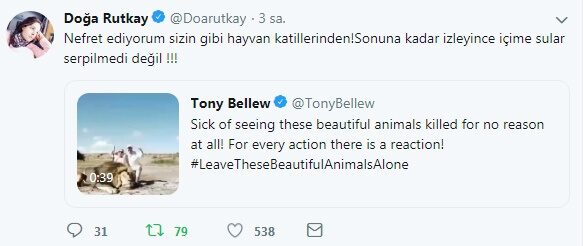 Ekranın sevilen oyuncularından Doğa Rutkay’dan, heyecanlı bekleyişin ardından ikiz bebeklerine kavuşmuş ve anne olmuştu. Sosyal medyayı aktif kullanan oyuncu Doğa Rutkay, sosyal medya paylaşımı ile dikkat çekti. Aslan avlayan kişilerin videosunu paylaşan güzel oyuncu Doğa Rutkay, “Nefret ediyorum sizin gibi hayvan katillerinden! Sonuna kadar izleyince içime sular serpilmedi değil! açıklamasında bulundu. İşte güzel oyuncu Doğa Rutkay’ın paylaşımı…