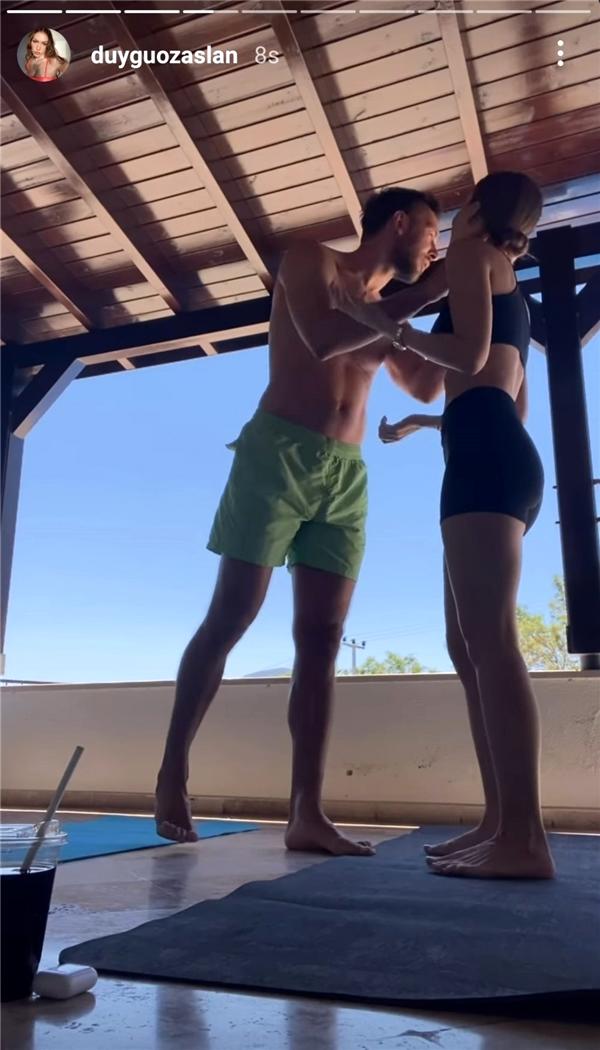 Özaslan, sevgilisiyle spor yapmadan önce çektiği video’yu da Instagram’ın hikaye bölümünden paylaştı.