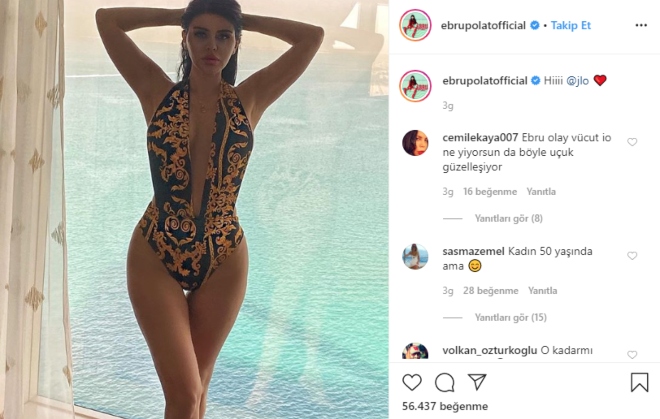 Geçtiğimiz ay “2.Sayfa” programına katılan ve yeni bir aşka yelken açtığı öğrenilen Ebru Polat “Zengin adam bulmuş” yorumlarına sert çıktı. Yorumlara “Siz salak mısınız? Benim zaten yeterince her şeyim var. Hiçbir şeye ihtiyacım yok. Benim 4 tane şirketim ve şarkıcılık mesleğim var. Ben sadece hava atmayı sevmiyorum. Ben öyle malını mülkünü gösteren bir tip değilim” yanıtını veren ünlü şarkıcı sosyal medya hesabından mayolu bir fotoğraf paylaşarak fiziğiyle Jennifer Lopez‘e meydan okudu.