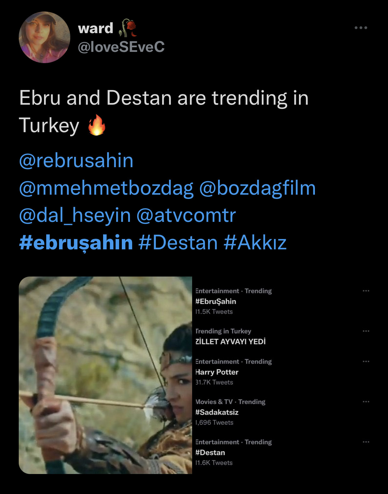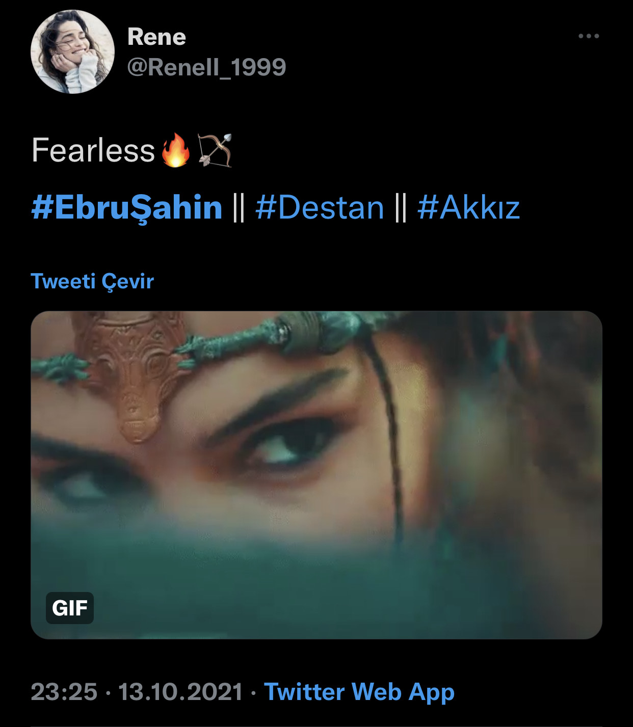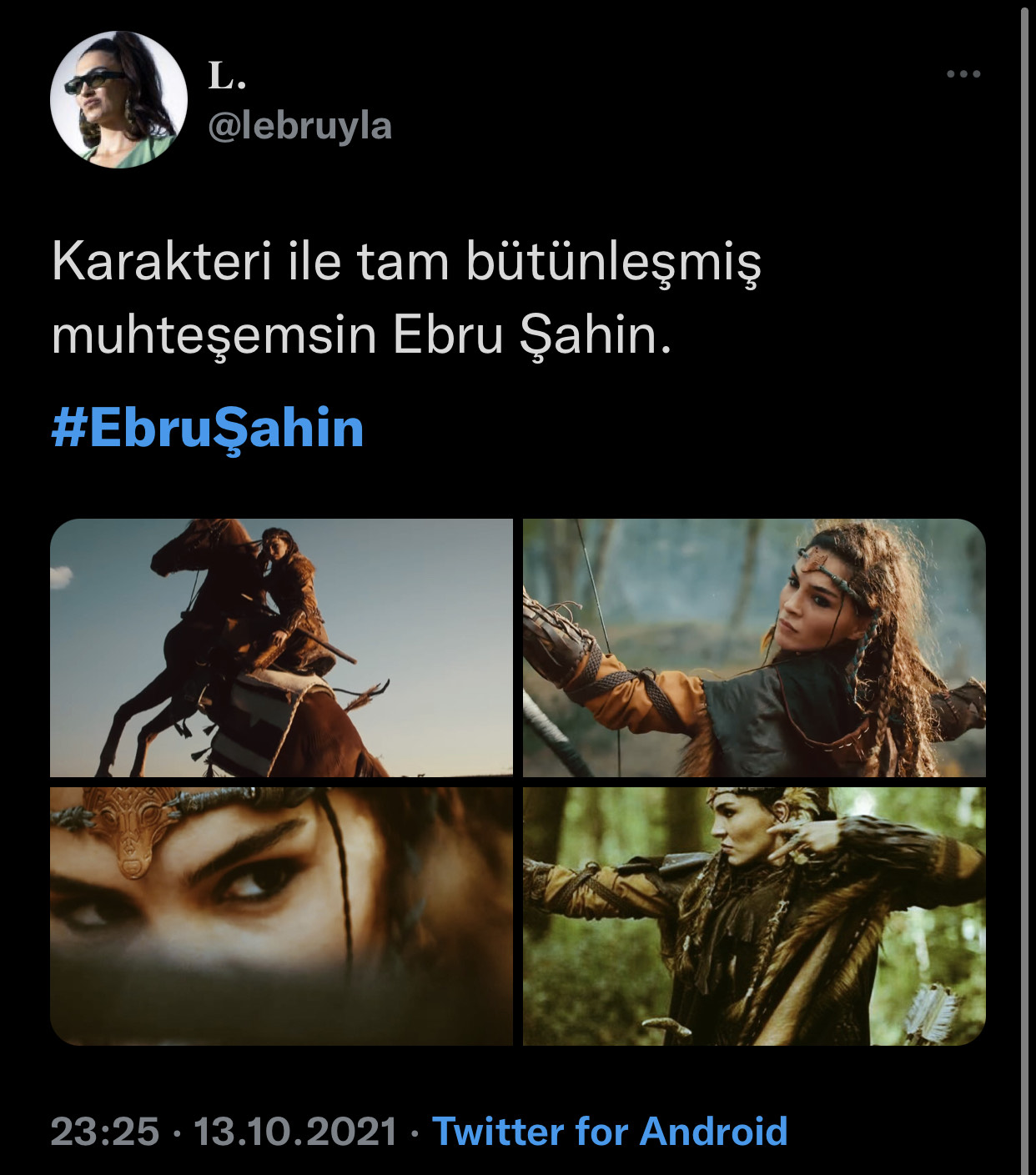 Oyuncu Ebru Şahin, at üzerindeki sahneleri, aksiyon performansı, duruşu ve güzelliğiyle hem Türkiye hem dünya gündeminde zirveye oturdu. Başarılı oyuncu için gece boyunca dünyanın her yerinden rolüyle ilgili tweetler atıldı.