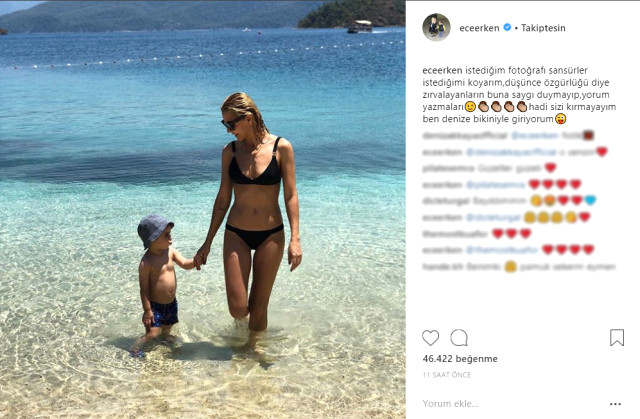 Ünlü Sunucu Ece Erken, tatil keyifleri ile sezonun yorgunluğunu atıyor. Sosyal medya hesabından paylaştığı fotoğrafında bikinili vücudunun görünmesini istemeyen Ece Erken, fotoğrafı paylaştıktan sonra tepki görmüştü. Hayranlarının sansür mü uyguluyorsun şeklindeki tartışmalarını takip ettiği görülen ünlü sunucu Ece Erken, hayranlarının bikinili fotoğrafını paylaşmasını isteyince tepkisiz kalmamış ve bikinili fotoğraf paylaşmıştı. Ünlü sunucu paylaşımı ile, hayranlarından tam not almayı başarmıştı…