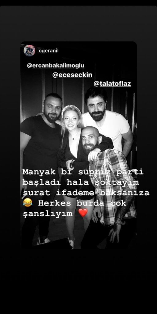 ’’Bu gece çok sevdiğim bütün arkadaşlarım burada. Bir sürpriz bekliyordum ama bu sefer gerçekten hiçbir şey çaktırmadılar. Hatta Derya arayıp o kadar normal konuştu ki akşam bir şey yaparsanız haber verin dedi. Çok mutluyum şuan da, iyi ki varsınız. Ekip arkadaşlarıma çok teşekkür ediyorum. Bol konserli, çok güzel şarkılar ve güzel işler yapacağımız uğurlu bir yaş olsun. Ben de bu vesileyle sizlere uğur getireyim. Hepimizi çok seviyorum. ”