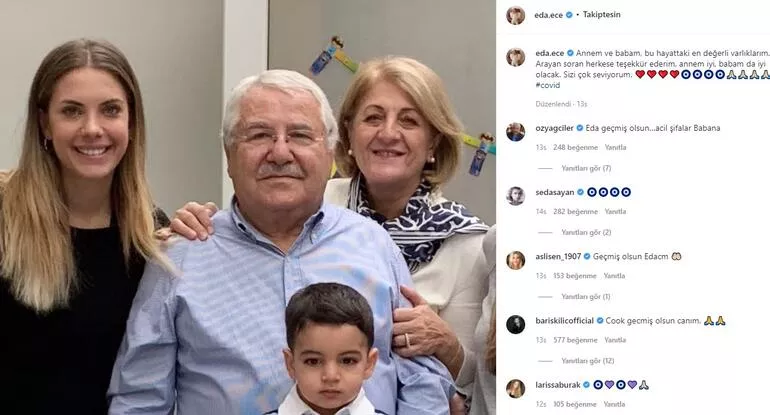 Instagram hesabından aile fotoğrafını paylaşan Ece, “Annem ve babam, bu hayattaki en değerli varlıklarım. Arayan soran herkese teşekkür ederim, annem iyi, babam da iyi olacak. Sizi çok seviyorum” ifadelerini kullandı.