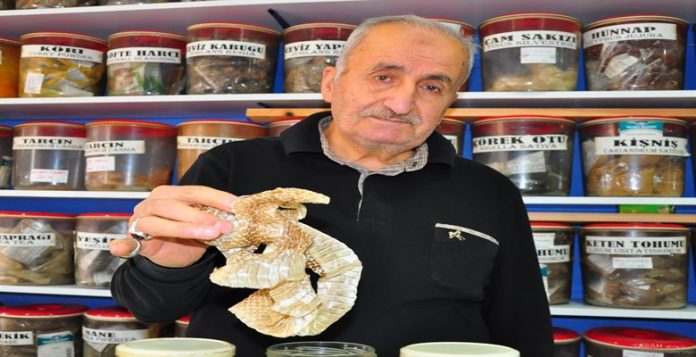 Manisa’da bir aktar tarafından satılan, kelliğe, hemoroide ve cilt hastalıklarına iyi geldiğine inanılan yılan derileri ilgi görüyor. Özel toplayıcılar tarafından haziran ve temmuz aylarında toplanan bozyörük yılanları, derilerini bırakmasının ardından hiç bozulmamış şekilde aktara getiriliyor. Şehzadeler ilçesindeki bir aktarda özel şekilde korunan yılan derileri, şifa olduğuna inanan insanlar tarafından büyük rağbet görüyor.