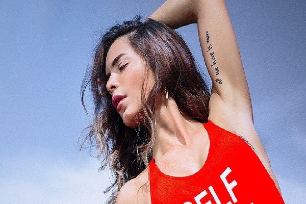 Eliz Sakuçoğlu, birbirinden şık bikini ve mayoları ile dikkat çekerken, düzgün fiziğini ve dövmelerini göğsünü gere gere sergiledi.