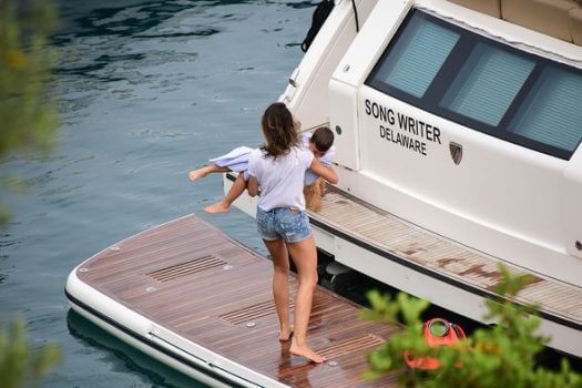 Teknede tatilin tadını çıkaran Emina; hiç durmaksızın 500 metre kadar yüzdü ve gözlüklerini takıp dalış yaptı. Akşamüzeri ise karaya çıkarak yürüyüş yaparken görüldü.