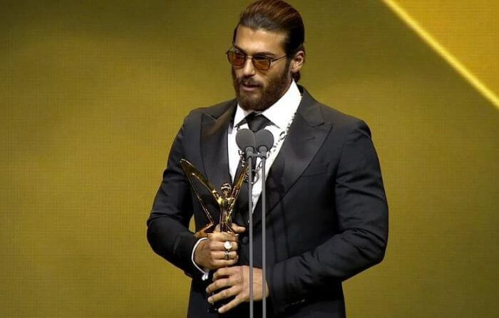 Can Yaman, Altın Kelebek ödüllerinde ‘En İyi Romantik Komedi Erkek Oyuncu’ ödülünü alırken de gözlükle sahneye çıkmıştı…