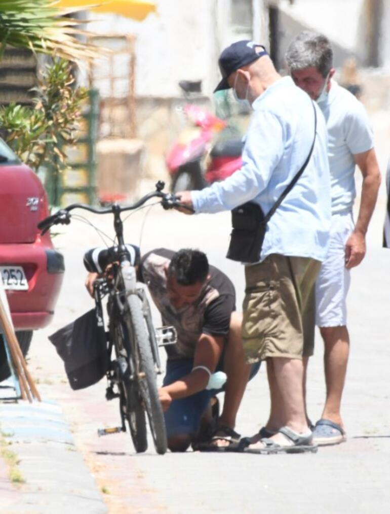 Şener Şen’in bisikleti bozulunca imdadına esnaf yetişti. Bisikletindeki problemin giderilmesinin ardından usta aktör çarşıdan ayrılarak evinin yolunu tuttu.