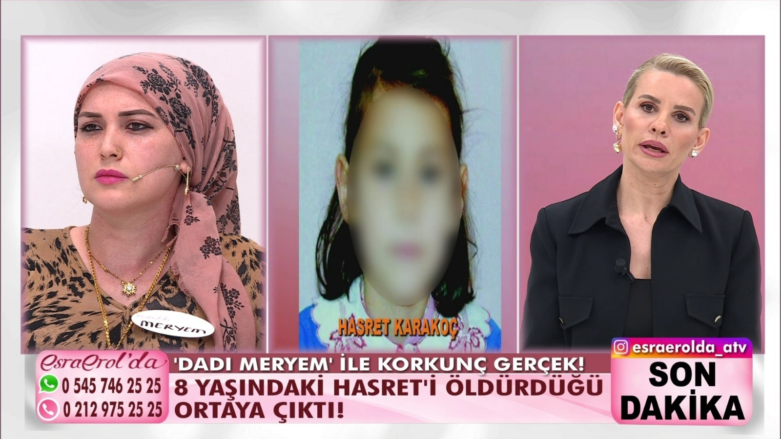 16 yaşındayken 8 yaşındaki bir kız çocuğunu diri diri gömerek öldürdüğü ortaya çıkan Dadı Meryem’in üstelik erkek olduğu ve hapishaneden çıktıktan sonra cinsiyet değiştirdiği öğrenildi. Geçmişteki adı Serkan olduğu anlaşılan Dadı Meryem, cinsiyet değiştirdikten sonra ise dadı olarak çalışmaya başlamış. 9 yıl hapis cezası çeken ve sonrasında cinsiyet değiştirerek geçmişini gizlemek isteyen Dadı Meryem’in çocukların yanına yaklaşmaması gerektiğini söyleyen Esra Erol’un bu açıklamaları ihanet ile birbirini suçlayan aileyi de çok şaşırttı.