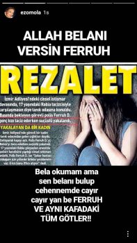 “Bela okumam ama sen belanı bulup cehennemde cayır cayır yan be Ferruh ve ayna kafadaki tüm g.tler! şeklinde bir not düşerek fotoğrafı paylaşan Ezgi Mola kısa süre içerisinde destek aldı. Oyuncunun paylaşımı pek çok kişi tarafından uygun görülürken paylaşım kısa sürede yüksek bir beğeni sayısına ulaştı.