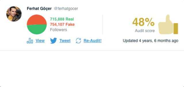 Bu durum kısa süre içerisinde sosyal medyada konuşulurken, ünlü sanatçının hesabı da mercek altında alındı. Yapılan incelemeler sonrasında Ferhat Göçer’in hesabını takip eden kullanıcıların yarıya yakınının fake hesaplar olduğu ortaya çıktı. Ferhat Göçer’in hesabı için yapılan analiz sonuçları ise şöyle;