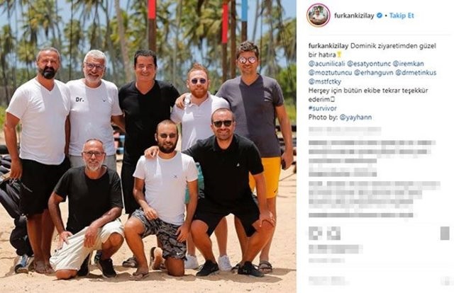 Furkan Kızılay, Çovuklar Duymasın dizisindeki Havuç rolü ile hayatımıza girmişti. Bir dönem Survivor’da yarışan Kızılay, Dominik Adası’nı ziyarete gitti. Eski yarışma anılarını tazeleyen ve hasret gideren Furkan Kızılay, TV8 kanalının sahibi ve Survivor yapımcısı Acun Ilıcalı ile Survivor’ın doktoru Metin Kuş’un da yer aldığı bir fotoğrafını sosyal medya hesabından paylaştı.