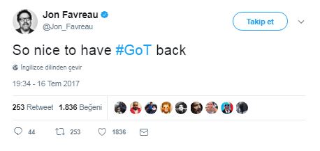 HBO kanalında yayınlanan ve yayınlandığı ilk günden itibaren herkesin dikkatini çekmeyi başaran yeni sezonuyla yine en çok konuşulan dizilerden birisi olmayı başardı. Geçtiğimiz gün başlayan yeni sezon ile birlikte yeniden Game of Thrones heyecanı HBO ile ekranlara taşınırken, yeni bölüm özellikle sosyal medyada dikkat çekti. #GameofThrones hashtagi ile yapılan paylaşımlarda, özellikle ünlü isimlerin de diziyi yakından takip ettiği net bir şekilde öğrenildi.